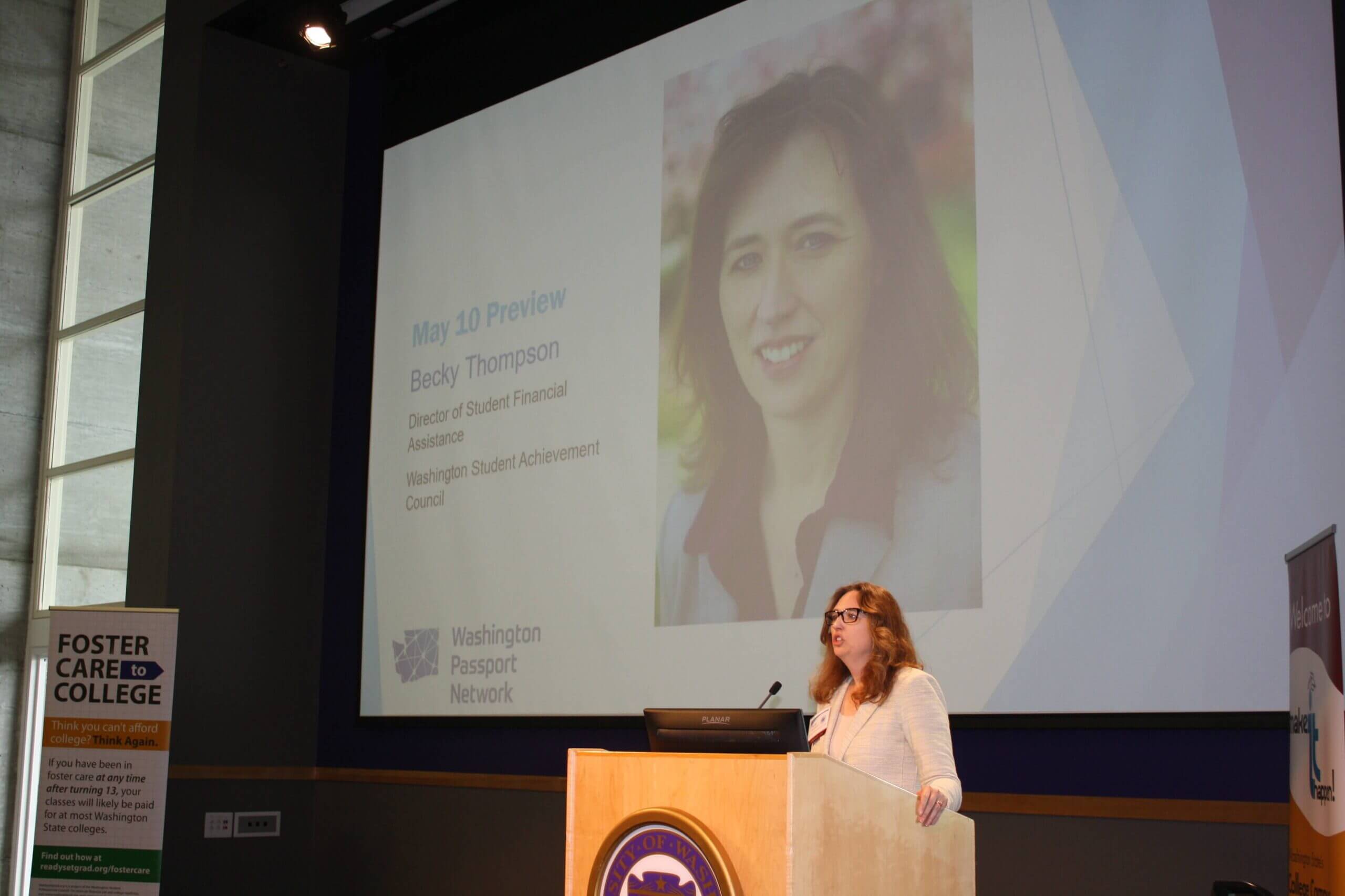 One goal of the May 10 program was to communicate information about an historic 3-year program expansion resulting from recently passed Senate bill 6274, which renames the Passport to College program Passport to Careers. Another was to articulate commitment from leaders in higher education and state government to equitable higher education outcomes for students from foster care. Senator Carlyle, author of the bill that established the Passport to College program in 2007, received a lively ovation after challenging attendees to persistently innovate, break down barriers, and organize around the needs of students – not the priorities of bureaucracies or systems.